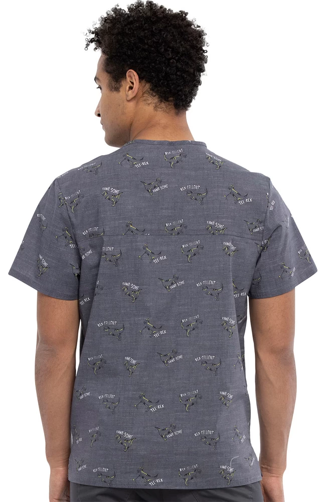 The Fashion Prints by Cherokee Men’s Rawrsome Print Scrub Top is an excellent start to your shift. The puns and various dinosaur characters make your day that much brighter.