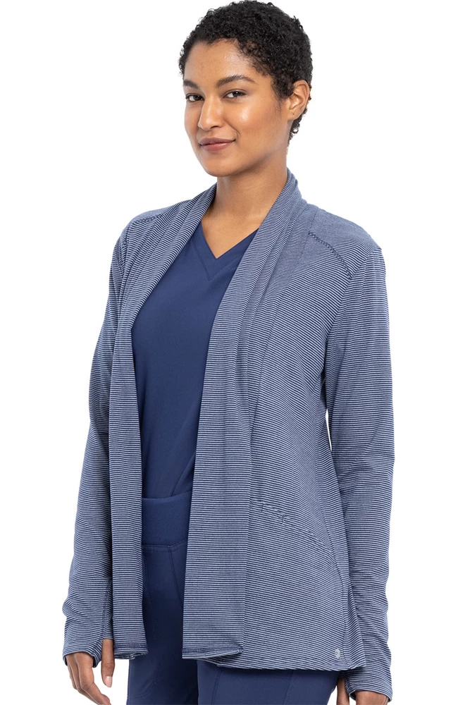 Dress to impress in the ultra-comfortable, Infinity by Cherokee Women’s Open-Front Stripe Print Scrub Jacket. This lovely layer features a fashionable micro-stripe that adds a hint of texture to your look.