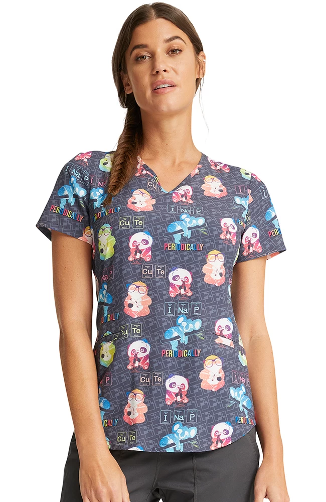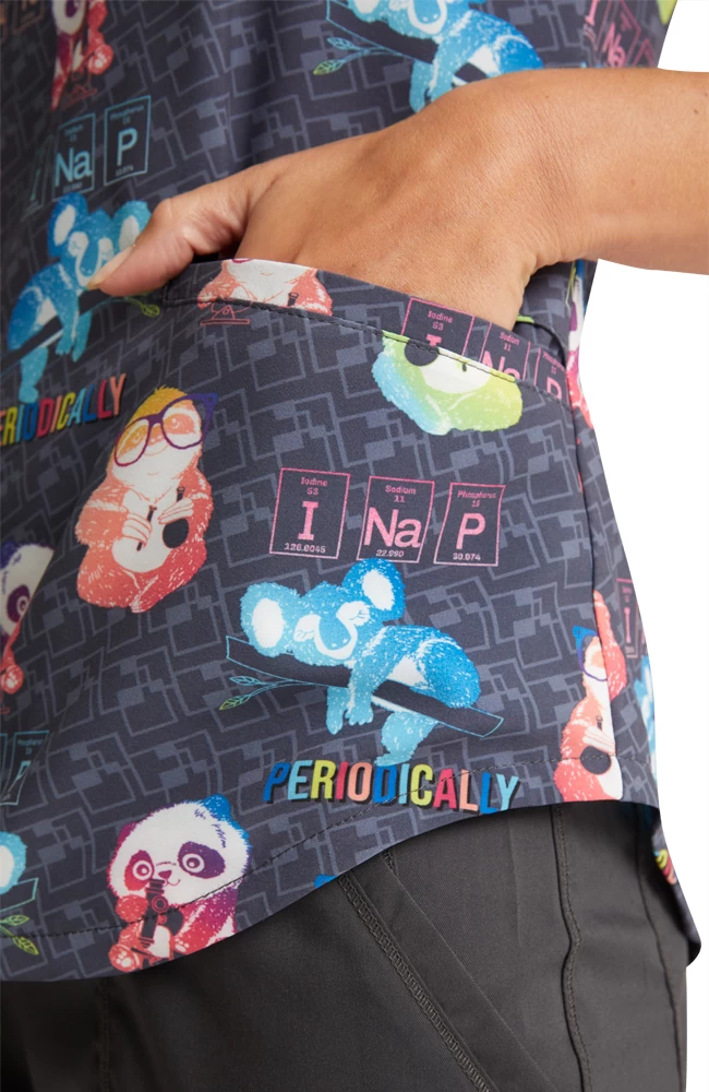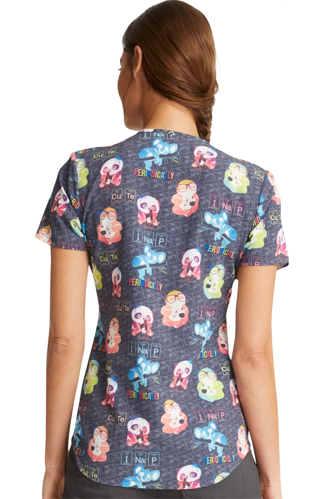 Cute chemistry-loving critters adorn the Fashion Prints by Cherokee Women’s Science Friends Print Scrub Top.
