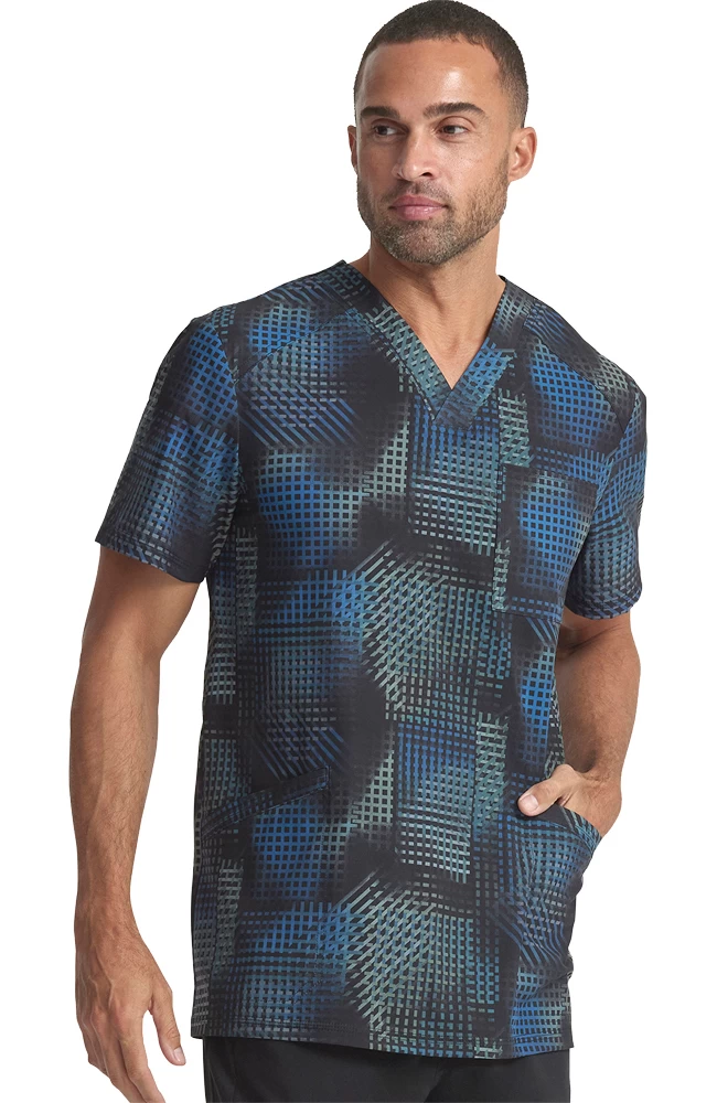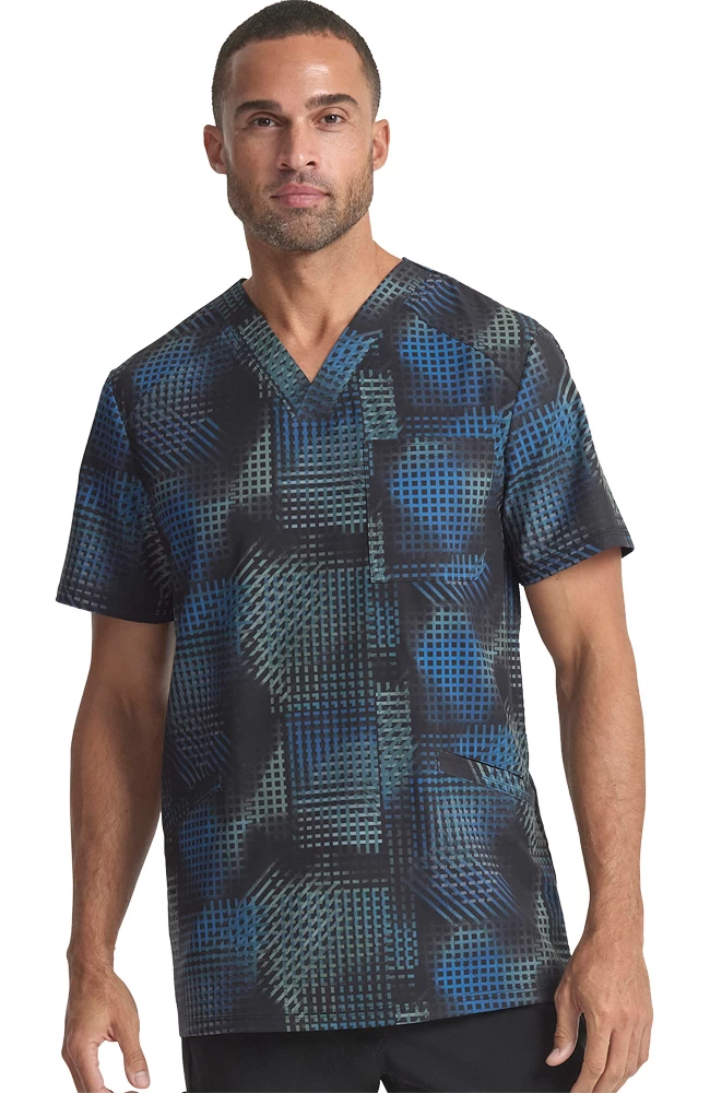 The Infinity by Cherokee Men’s V-Neck Gradient Grid Print Scrub Top is made for the healthcare pro with minimalist style. Featuring a subtle geometric print, this hard-working scrub top has pockets for essentials, so you’re always ready for anything.