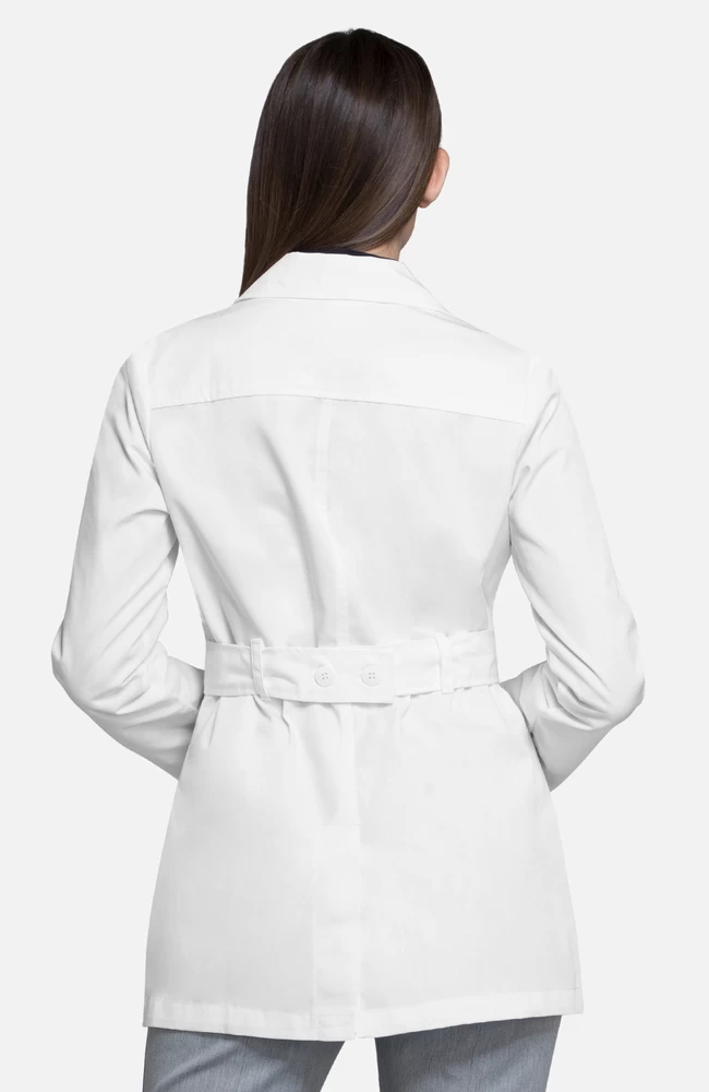 Fashion and function at their purest. Twill lab coat features a five-button front, front princess seams for a flattering fit, front angled-pockets, a stylish back belt with button detail, back yoke and center back vent.