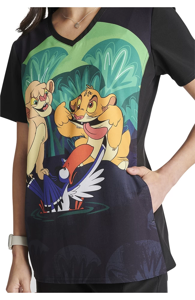 Make everyone smile in the Tooniforms by Cherokee Women’s Too Funny Print Scrub Top. Designed with beloved characters from the Lion King, this printed scrub top has front and back princess seams for added shape and a single front pocket for all your everyday essentials.