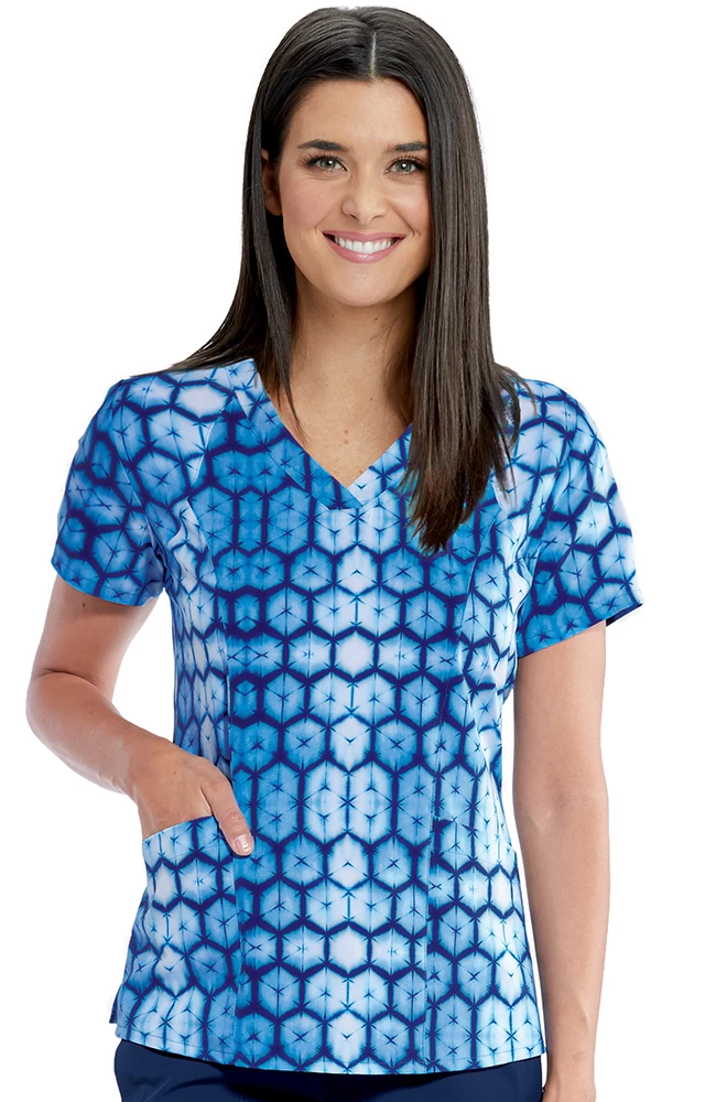 The Barco One Women’s Cool Blues Print Scrub Top offers you a twist on classic ombre. With the incorporation of abstract geos and mirrored forms, this top is a work of art.