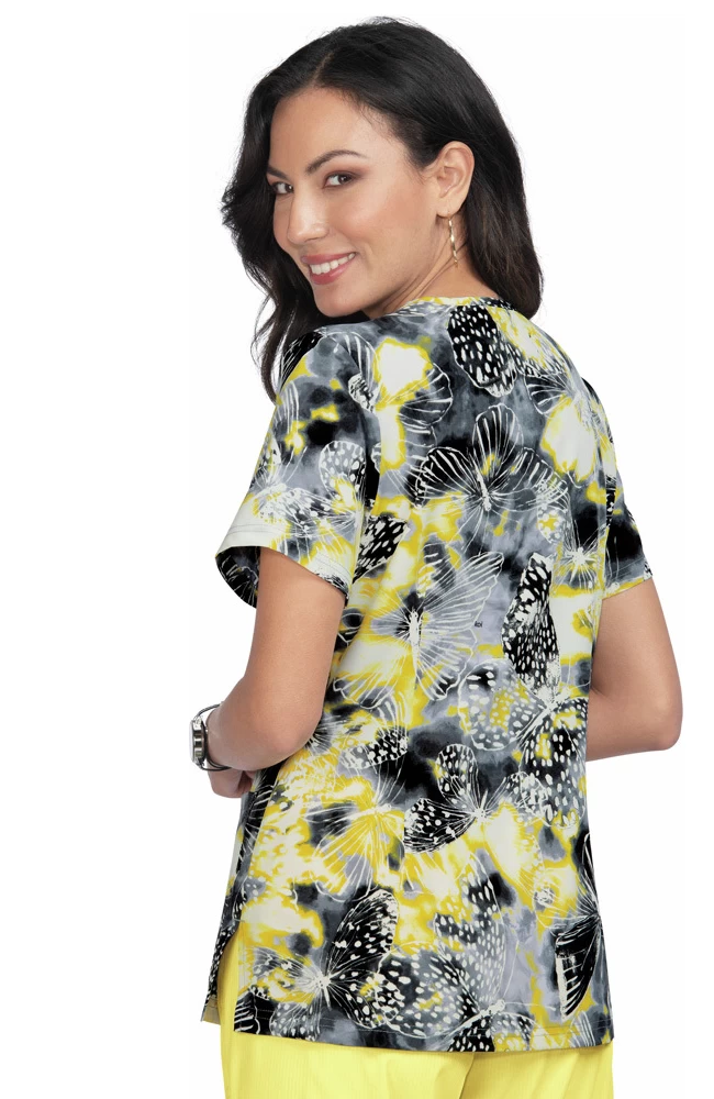 Get a bright outlook in the koi Lite Women’s Lola Sunny Tie Dye Butterfly Print Scrub Top. With its pretty keyhole neckline, this mock wrap scrub top is truly unique.