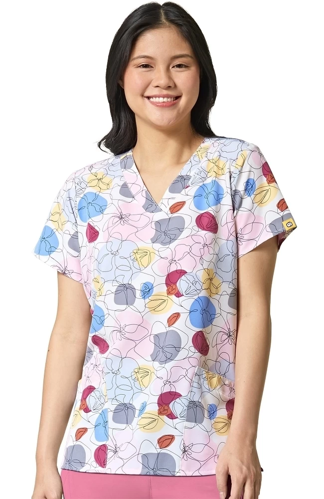 Say hello to warmer days in the WonderWink Women’s Petal Lined Print Scrub Top. This spring and summer-ready scrub top is finished with two multifunctional pockets for your essentials.