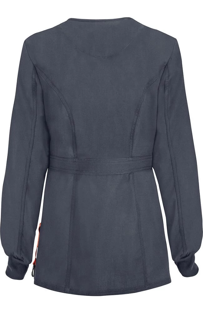 The code happyâ„¢ with CERTAINTY PLUS® Antimicrobial and Fluid Barrier Fabric Technology Women’s Round Neck Warm Up Scrub Jacket is the perfect layer to add to your scrub set. Get lots of additional pockets, plus an ID loop and superior antimicrobial and fluid barrier features.
