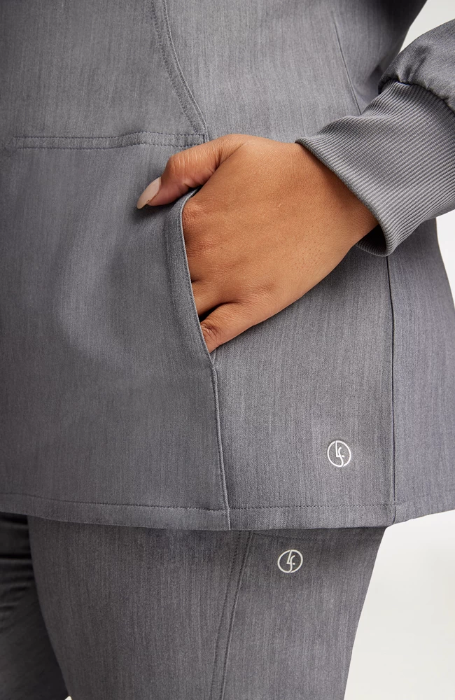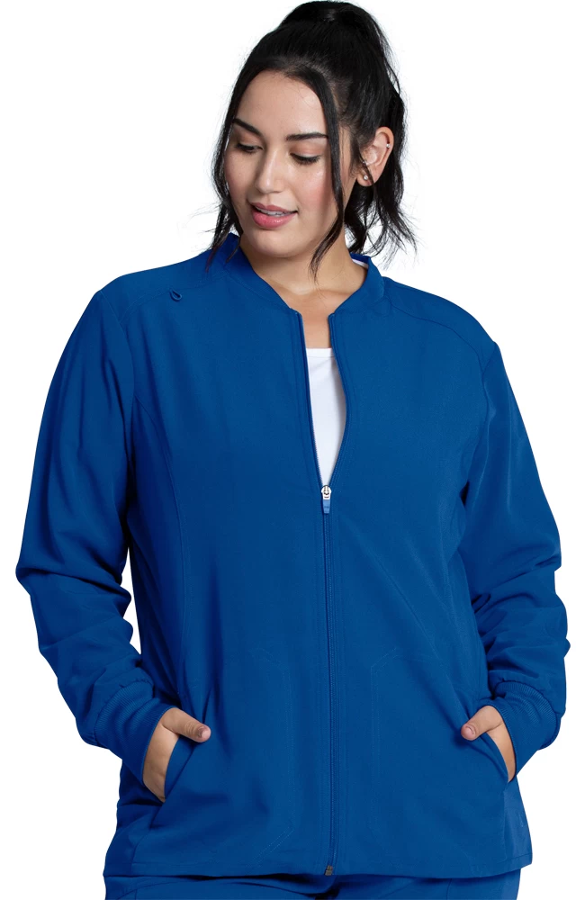 Take your outerwear up a notch with the Luxe Supreme by AllHeart Women’s Warm-Up Solid Scrub Jacket. A favorite of fashionistas and medical professionals alike, this contoured scrub jacket features form-fitting construction details and a streamlined pocket design.