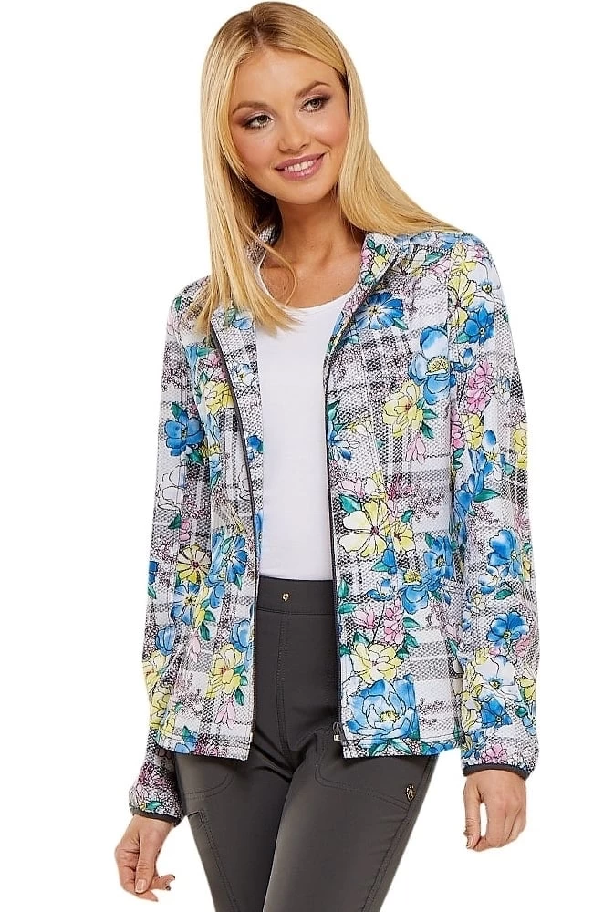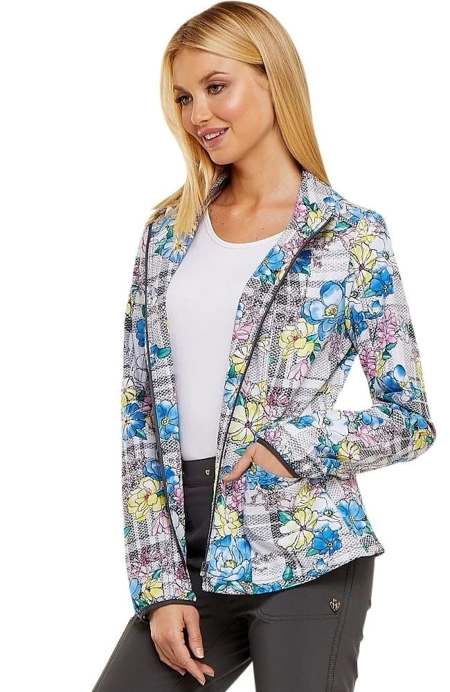 Motifs combine on this heartsoul Women’s Zip Front Warm-Up Plaid Print Scrub Jacket. Lots of pockets and loops let you easily tote instruments, your phone, and even conceal earbuds in style.
