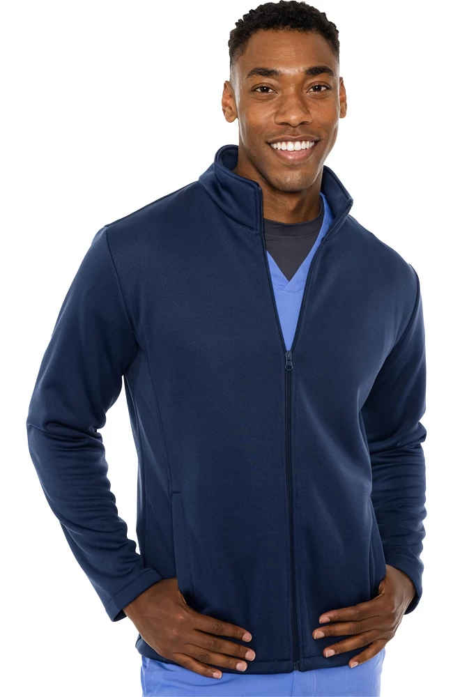 This Activate by Med Couture Men’s Med Tech Zip Up Solid Scrub Jacket is so sleek, you’ll want to wear it off-duty. Bonded fleece provides just enough warmth when you need it.