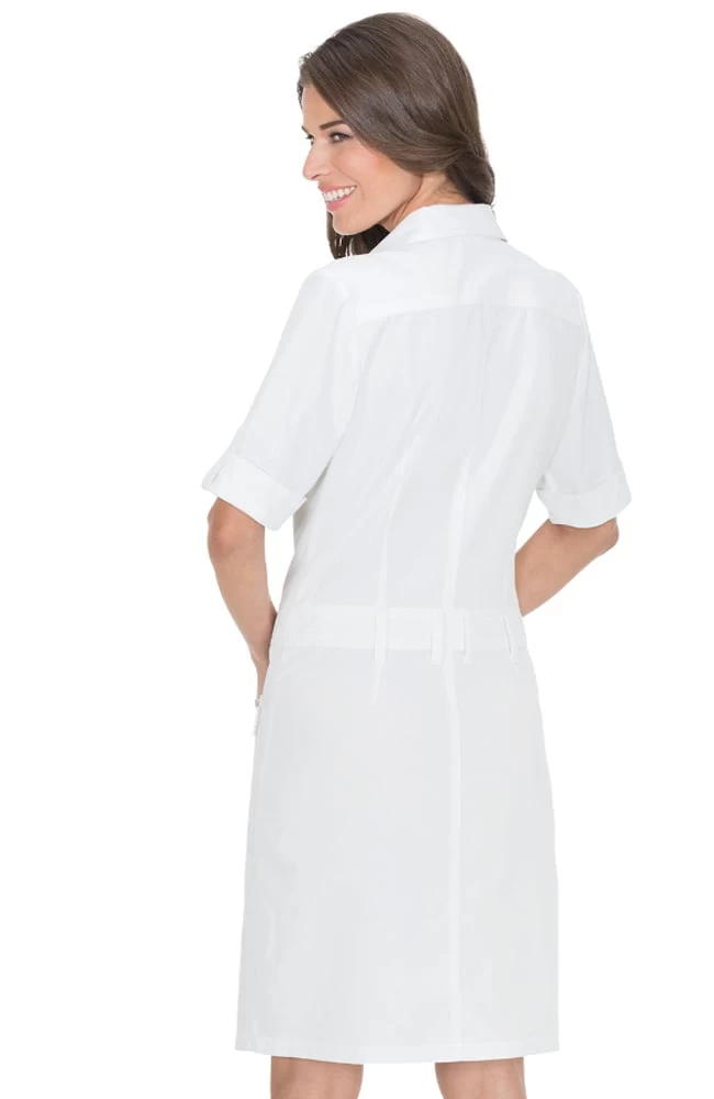 Styles combine on the koi Women’s Alexandra Scrub Dress. A shirt-dress silhouette flatters while lots of pockets and a full button-front closure add convenience.