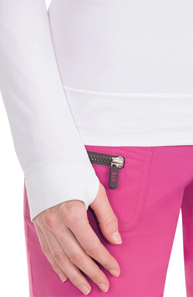 A seamless silhouette makes the koi Lite Women’s Divine Seamless Solid Long Sleeve T-Shirt perfect for layering. Ribbed side panels are specially engineered to hug your curves for an always-flattering fit.