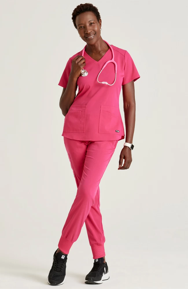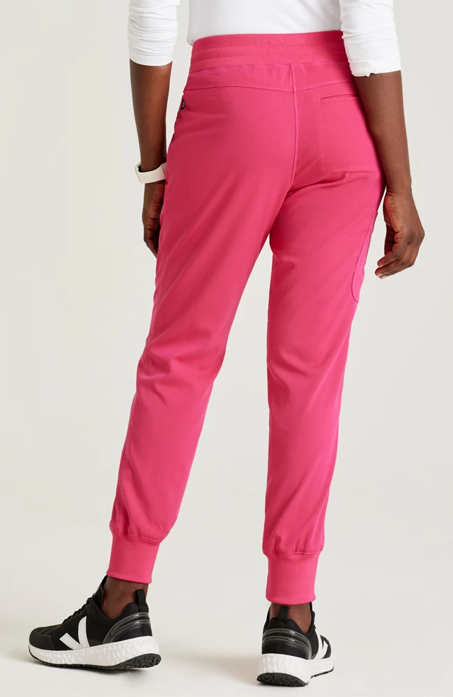 Great for relaxing around the house or going on a run, the Spandex Stretch by Grey’s Anatomy Women’s Eden Jogger Scrub Pant offers much versatility. The velveteen poplin fabric and athletic drape make for the ideal blend of functional activewear and casual apparel.