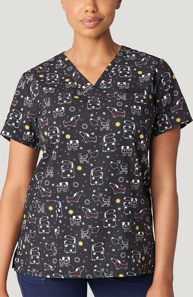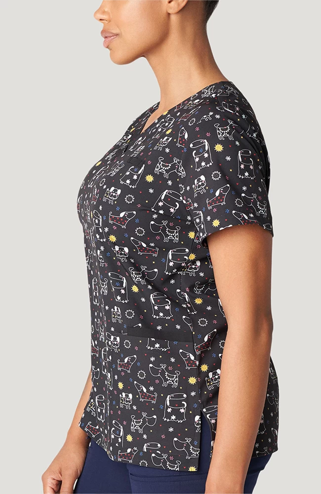 The Marvella by White Cross Women’s V-Neck Puppy Playdate Print Scrub Top is made for the dog lover in all of us. Not only is this scrub top adorable, it’s designed with tons of pockets for your needs and a convenient badge loop at the chest.
